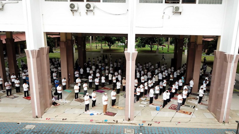 Yang berbeda, penyelenggaraan salat Jum'at kali ini digelar di pelataran Gedung Pusat Pemerintahan Kota Tangerang dengan jamaah yang merupakan ASN Pemkot Tangerang.