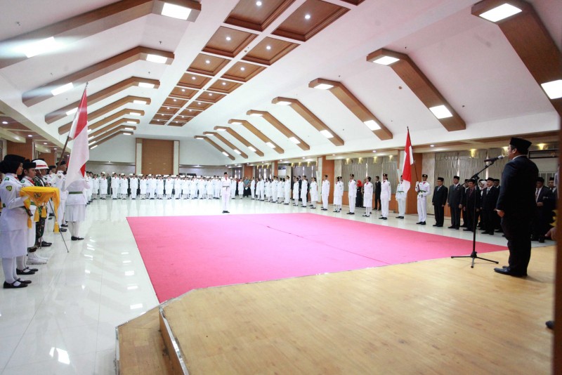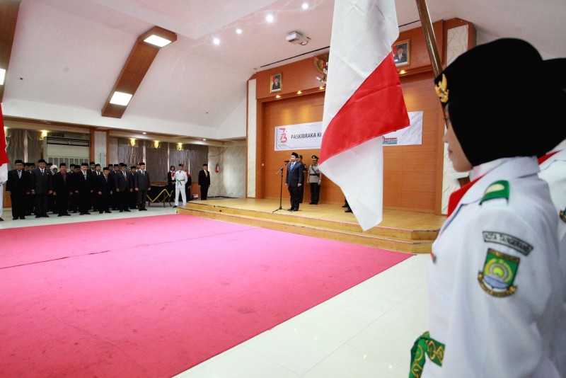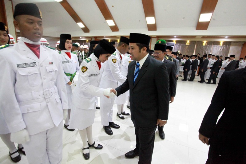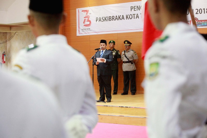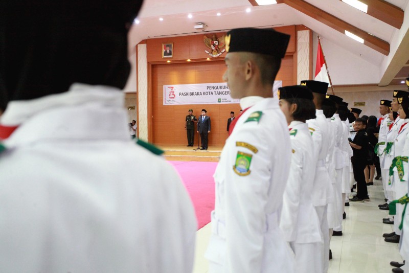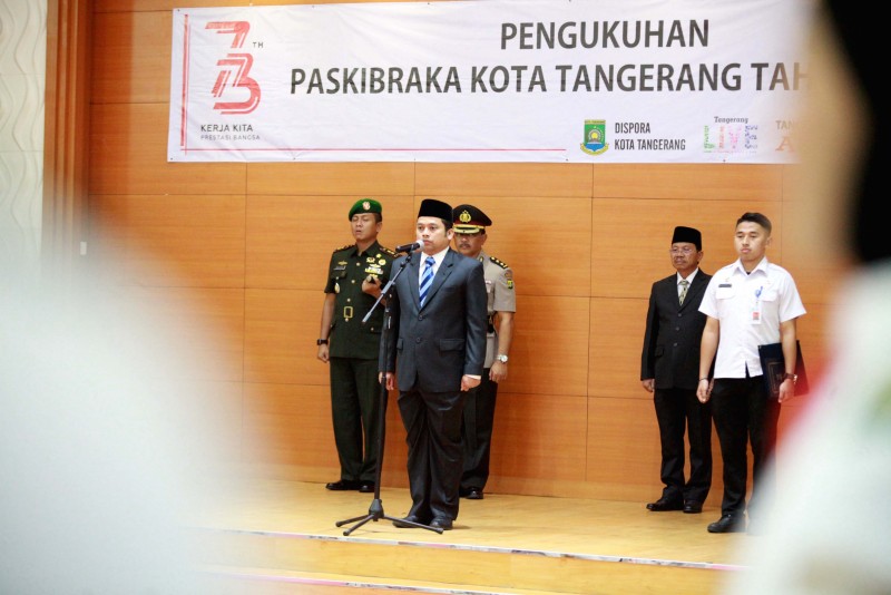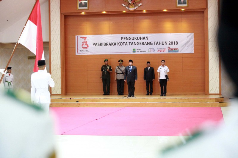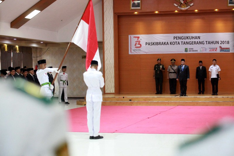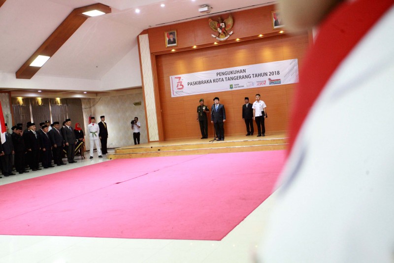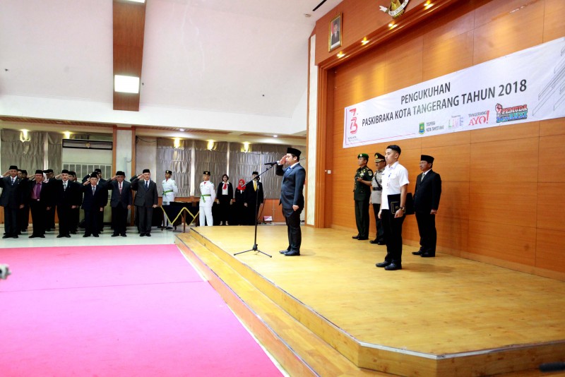 Wali Kota Tangerang H. Arief R. Wismansyah didampingi Wakil Wali Kota H. Sachrudin beserta unsur Forkopimda Kota Tangerang mengukuhkan Pasukan Pengibar Bendera Pusaka (Paskibraka) Kota Tangerang Tahun 2018.