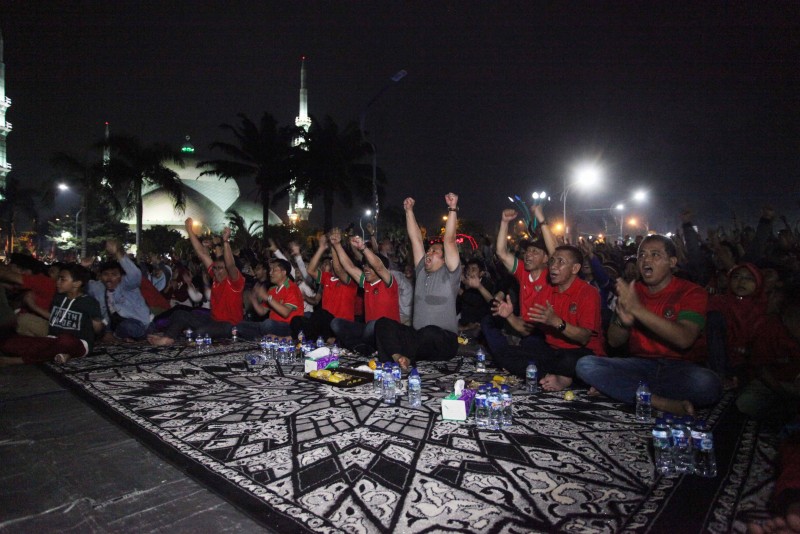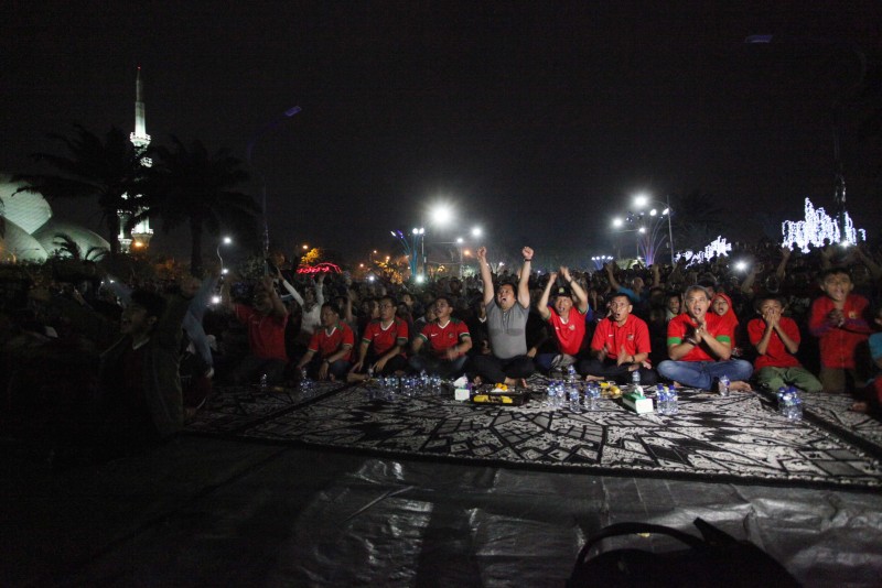 Selepas Isya, pelataran Pusat Pemerintahan (Puspem) Kota Tangerang sudah terlihat dipadati oleh ribuan supporter yang hadir. Dan seolah tidak mau kalah dengan para supporter yang hadir di Gelora Sidoarjo, ribuan masyarakat Kota Tangerang dan sekitarnya yang ikut nobar juga terlihat begitu semangat menyanyikan lagu penyemangat bagi Tim Garuda.