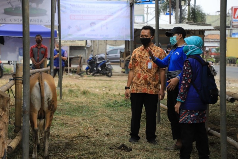 Pemerintah Kota Tangerang, melalui Dinas Ketahanan Pangan (DKP), meninjau lapak-lapak hewan kurban, guna memastikan kesehatan hewan dan kepatuhan para pedagang pada protokol kesehatan dalam upaya pencegahan penularan Virus Corona, Kamis (2/7/20).