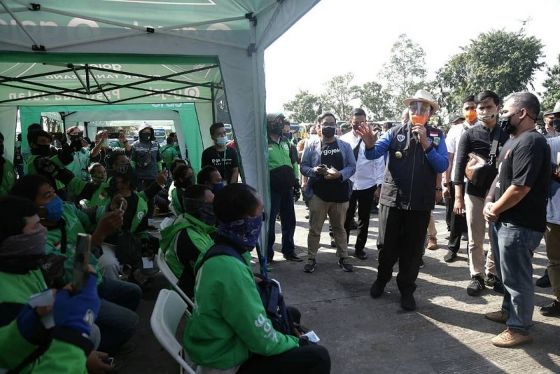 Para pengemudi Ojek Online (Ojol) di Kota Tangerang mulai hari ini sudah diperbolehkan untuk mengangkut penumpang. Namun, tak serta merta bisa langsung mengangkut penumpang, ojol diminta konsisten menjalankan protokol kesehatan untuk mencegah penularan Covid-19.