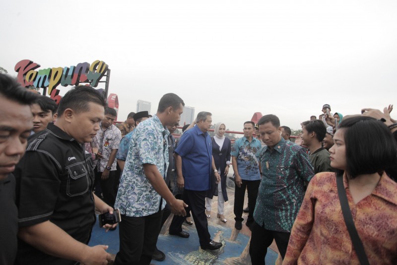 Presiden Republik Indonesia Ke-6, Susilo Bambang Yudhoyono, yang didampingi sang istri Ani Yudhoyono, menyambangi Kampung Bekelir, salah satu lokasi wisata andalan Kota Tangerang.
