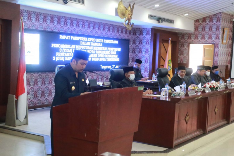 Wali Kota Tangerang Arief R. Wismansyah dan Wakil Wali Kota Tangerang Sachrudin, hadir dalam Rapat Paripurna DPRD Kota Tangerang dengan agenda Pengambilan Keputusan Mengenai Penetapan 3 (Tiga) Raperda Kota Tangerang dan Penyampaian Penjelasan DPRD Mengenai 2 (Dua) Raperda Inisiatif DPRD Kota Tangerang.