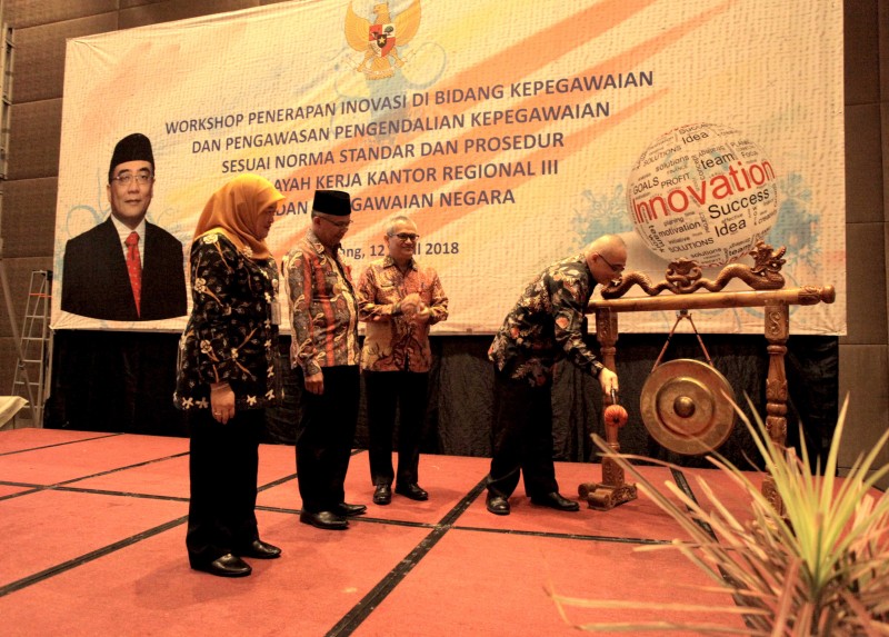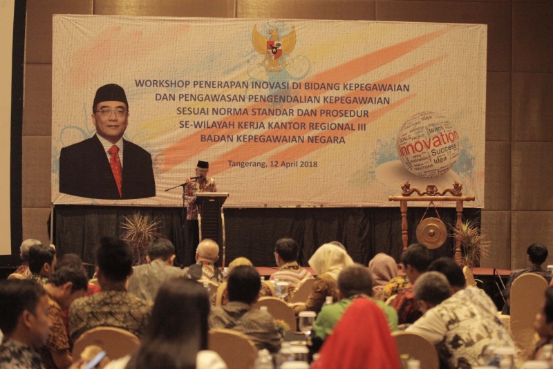 Hal tersebut disampaikan oleh Kepala BKN, Bima Harya Wibisana, saat membuka Workshop Penerapan Inovasi di Bidang Kepegawaian dan Pengawasan Pengendalian se-Wilayah Kerja Kantor Regional (Kanreg) III Badan Kepegawaian Negara (BKN) di Hotel Novotel, Kota Tangerang, Kamis (12/04).