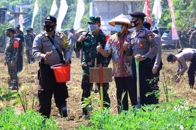 Pada acara kali ini, selain dilakukan penanaman Palawija dan tanaman produktif lainnya, dibagikan juga alat pertanian untuk bercocok tanam, penyebaran puluhan ribu benih ikan lele, ikan mujair, dan ikan gurame serta dibagikan juga 1.000 paket sembako untuk masyarakat yang terkena dampak pandemi Covid-19.