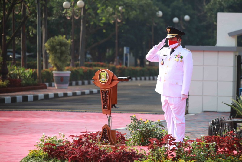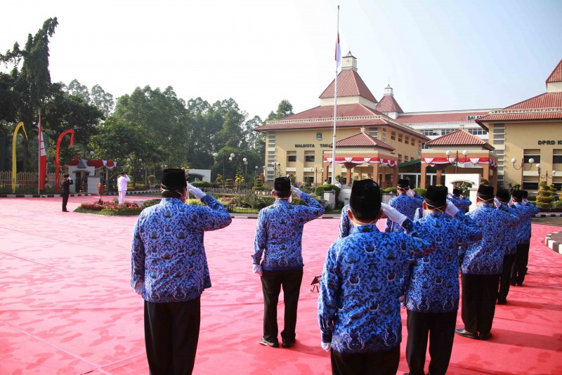 Upacara HUT RI yang biasanya digelar secara meriah di Lapangan Ahmad Yani Kota Tangerang, kini digelar di Plaza Puspemkot Tangerang dengan diikuti 67 peserta yang terdiri dari TNI, Polri, Forkopimda dan OPD Pemkot Tangerang.