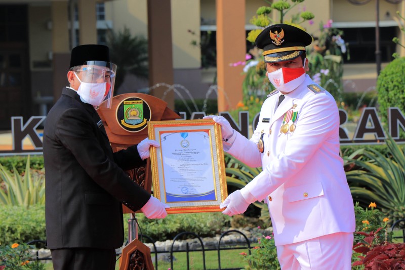 Usia melaksanakan Upacara Peringatan HUT RI Ke-75, Walikota dan Wakil Walikota Tangerang mengikuti Peringatan Detik-Detik Proklamasi Kemerdekaan Republik Indonesia Ke-75 secara virtual yang dipimpin langsung oleh Presiden Republik Indonesia Joko Widodo.