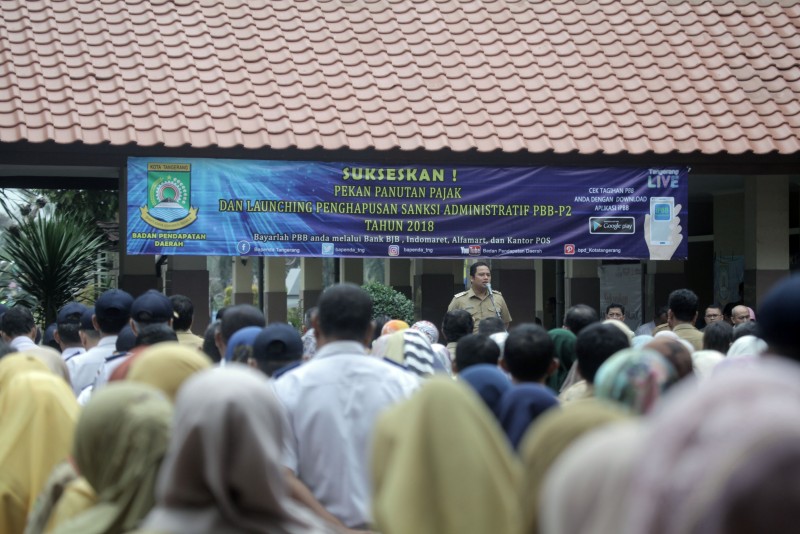 Dalam rangka menegakan tertib pembayaran administrasi Pajak Bumi dan Bangunan (PBB), Pemerintah Kota Tangerang menggelar kegiatan Pekan Panutan Pajak Tahun 2018 yang dibarengi dengan Apel Pagi Pegawai.