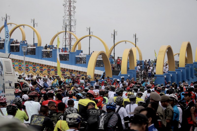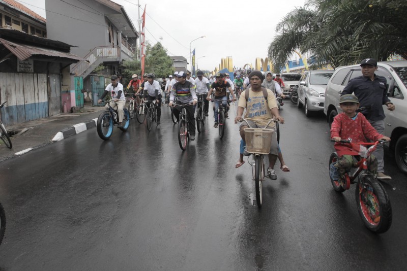 Ribuan goweser sejak pagi memadati Jalan Benteng Jaya di pinggiran Sungai Cisadane untuk mengikuti Fun Bike yang menjadi rangkaian kegiatan peringatan HUT Kota Tangerang Ke-25 yang jatuh pada tanggal 28 Februari 2018 nanti.