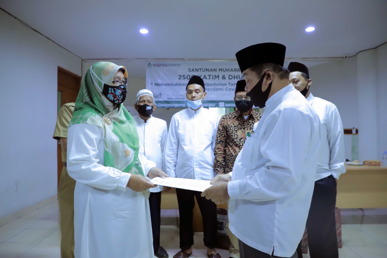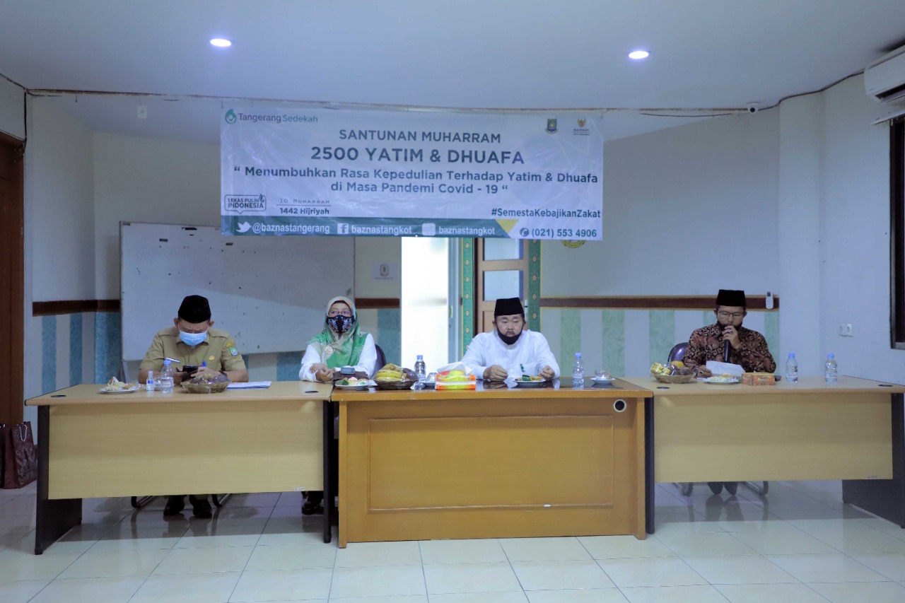 Memperingati 10 Muharram, Baznas bersama Pemkot Tangerang menyalurkan santunan, kepada 3500 yatim dan duafa se-Kota Tangerang. Penyerahan secara simbolis dilakukan di Gedung MUI, Kota Tangerang, Jumat (28/8/10).