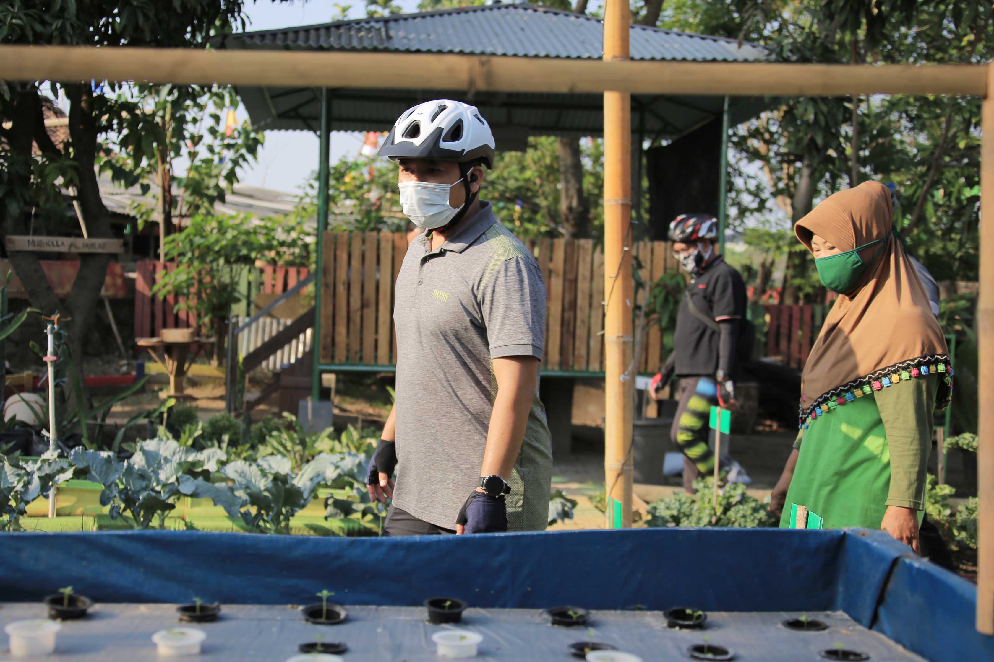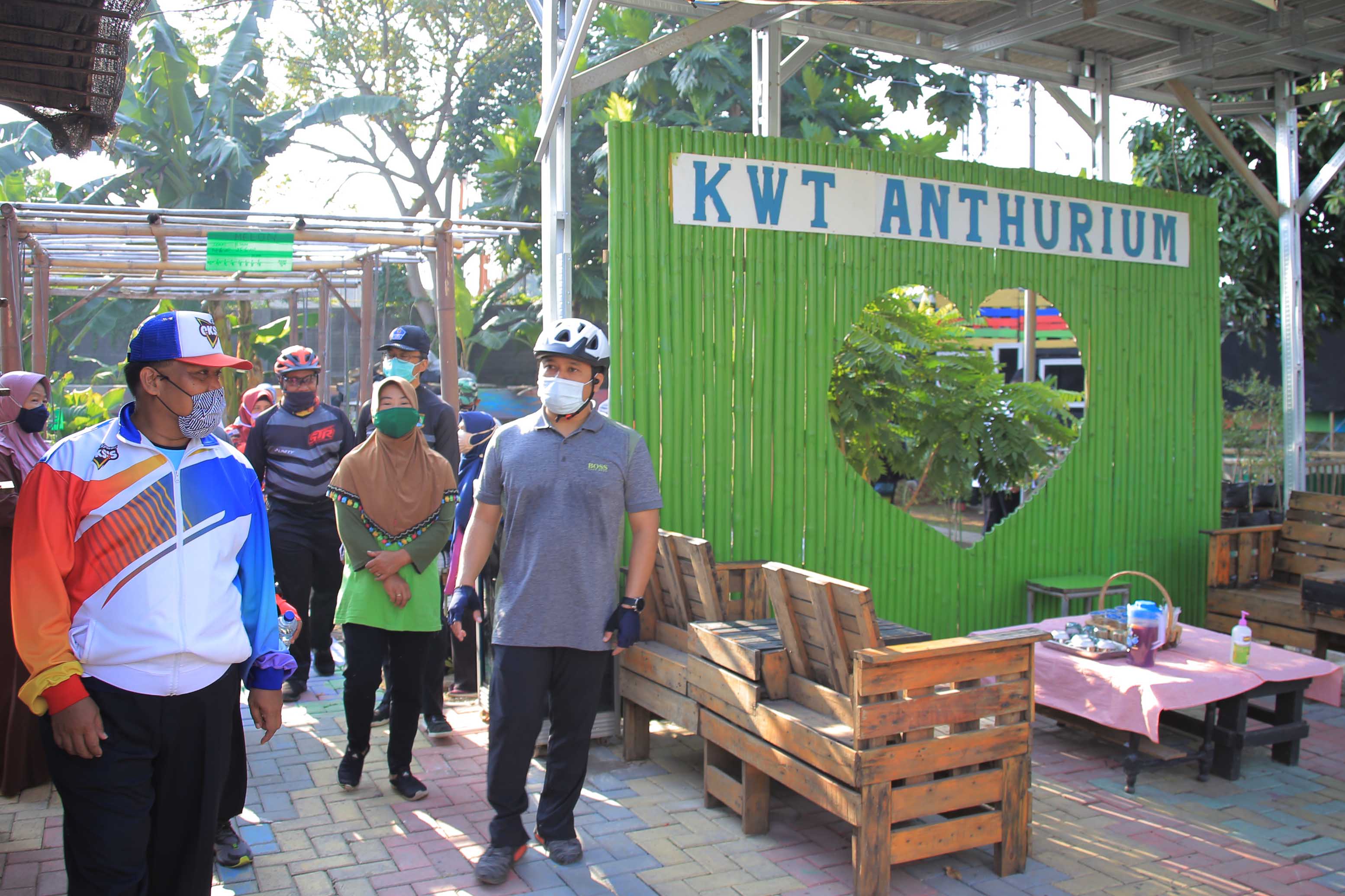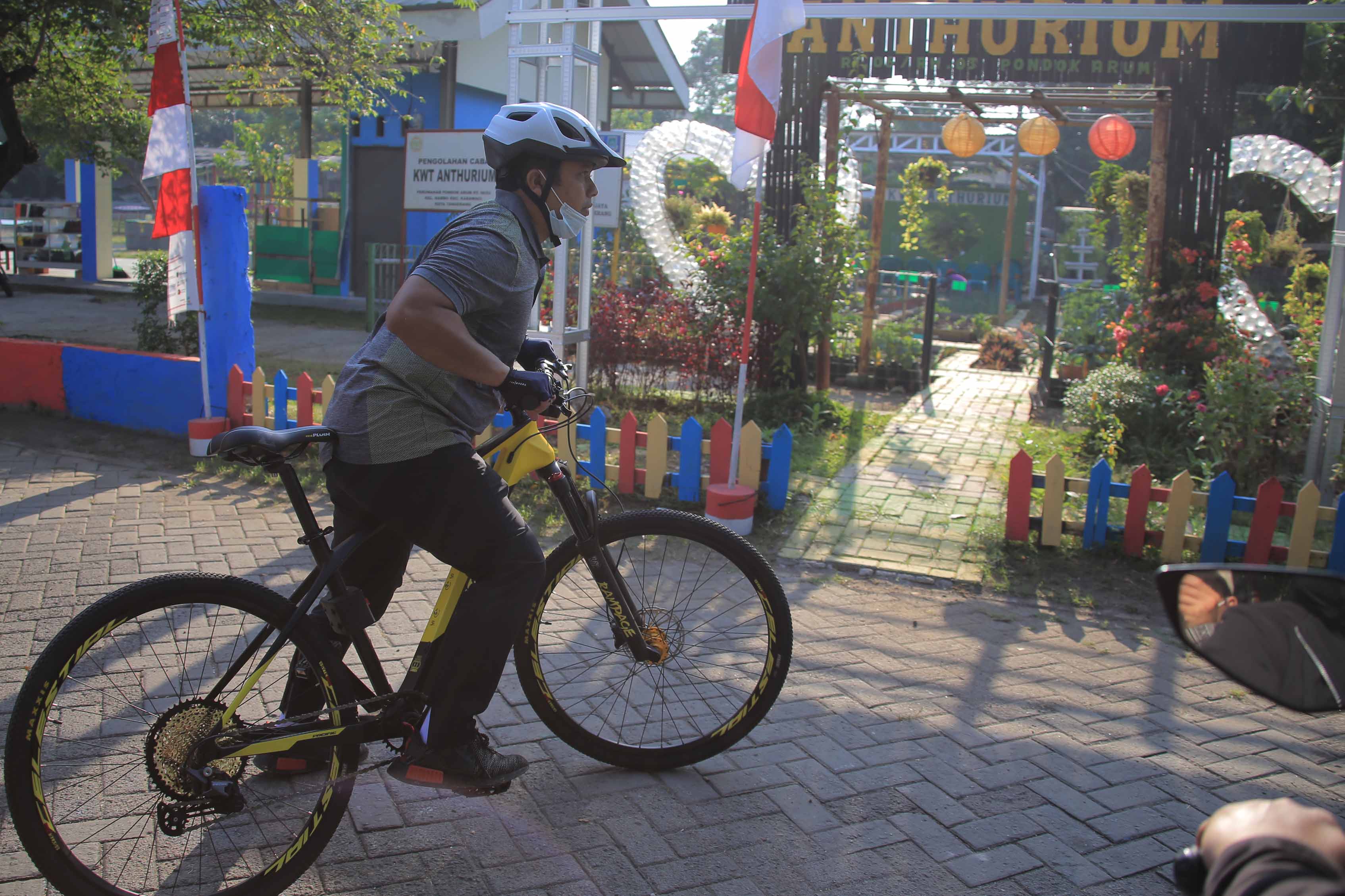 Sambil bersepada santai, pada Jum'at (28/8/2020) pagi, Wali Kota Tangerang, Arief Wismansyah, bersama sejumlah kepala SKPD, melakukan pengeceken di KWT Anthurium yang berlokasi di RT 06/03, Kelurahan Nambo Jaya, Kecamatan Karawaci. Di lokasi yang menjadi Kawasan Rumah Pangan Lestari (KRPL) tersebut, Arief melihat lahan KWT yang ditanami berbagai tanaman produktif.