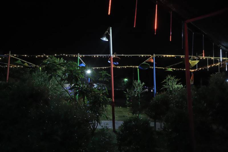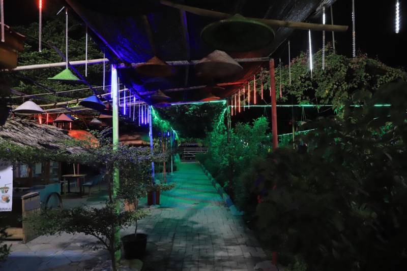 Selain itu, para pengunjung juga ditawarkan dengan berbagai fasilitas menarik yang memebuat pengunjung tak perlu khawatir untuk berlama-lama di kampung ini. Mulai dari posyandu, musala, toilet, playground hingga lampu warna-warni saat malam hari.