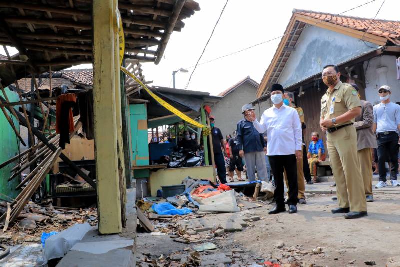 Didampingi Camat Neglasari Tubagus Sani Soniawan, Wakil meninjau rumah milik Ibu Sana yang dihuni bersama sebanyak tujuh kepala keluarga yang beberapa waktu lalu habis dilahap si jago merah.