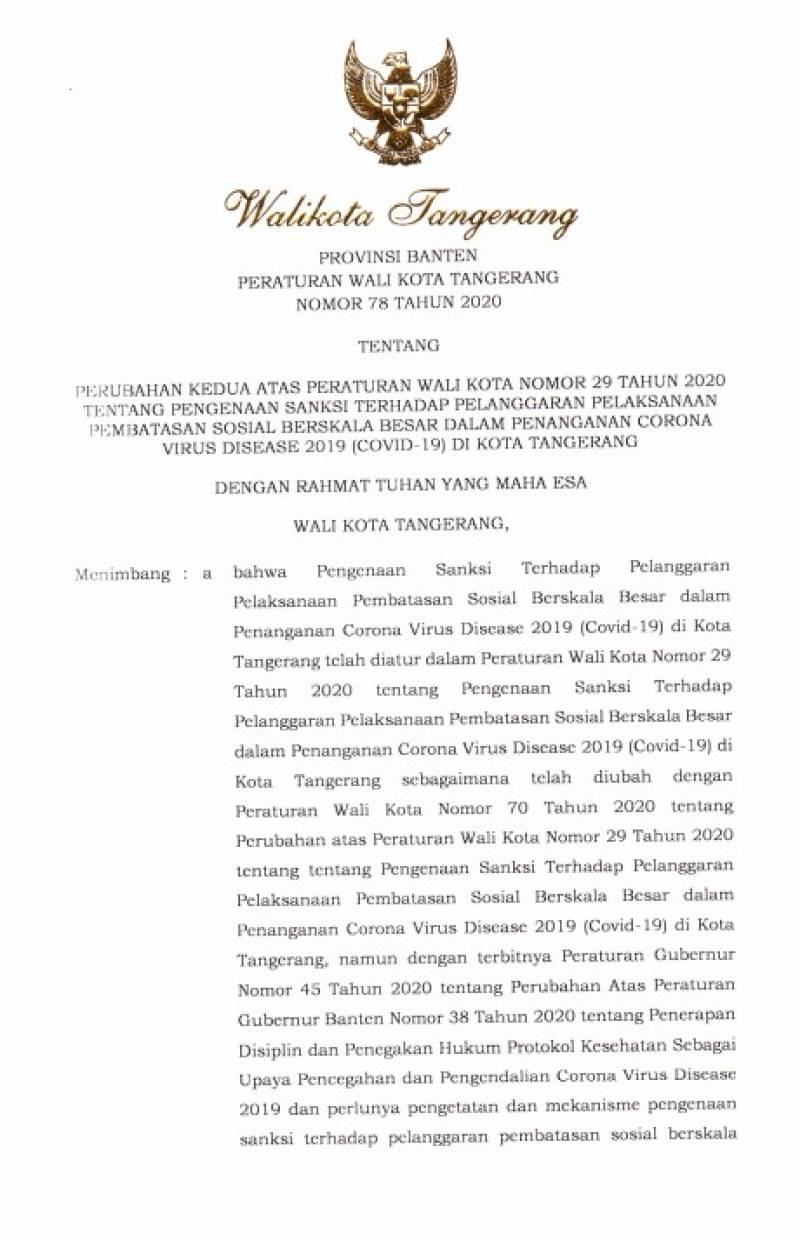 Pemerintah Kota (Pemkot) Tangerang mewajibkan kepada para pemilik usaha seperti pusat perbelanjaan, perkentaroan dan rumah makan termasuk juga pengelola pondok pesantren untuk membentuk gugus tugas atau satuan tugas penangananan dan penanggulangan Covid 19.