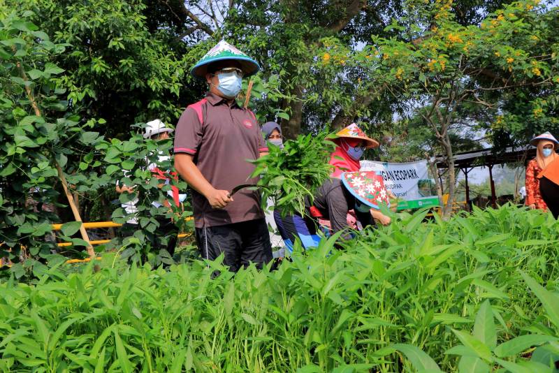 "Kemudian untuk perawatannya dikerjain bersama KWT," terang Arief saat melakukan Panen Raya di Ecofarm, Kelurahan Mekarsari, Kecamatan Neglasari, Jumat (25/9).