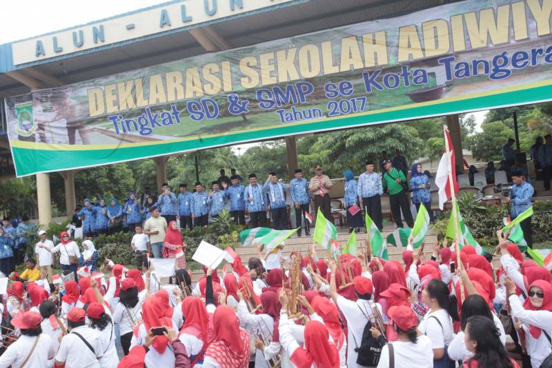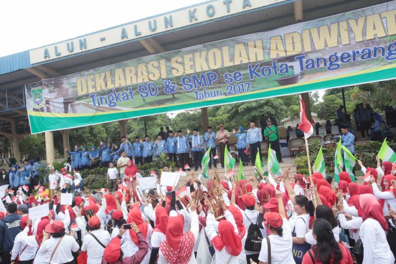 Deklarasi Sekolah Adiwiyata ini dilakukan oleh perwakilan dari 13 UPTD Pendidikan se-Kota Tangerang bersama-sama dengan para tenaga pengajar pendidikan dan murid dari berbagai sekolah SD dan SMP se-Kota Tangerang.