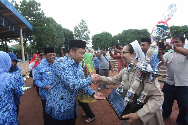 Pada kesempatan tersebut, Wali Kota juga menyerahkan penghargaan kepada sekolah SD dan SMP baik negeri maupun swasta dalam mengelola sanitasi yang baik di lingkungan sekolah untuk meningkatkan kualitas belajar mengajar di sekolah.