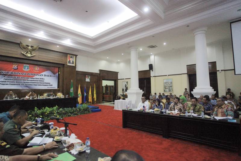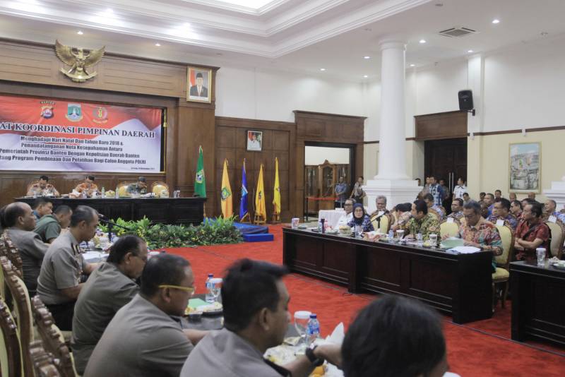 Pemerintah Provinsi Banten, Kamis (14/12), menggelar Rapat Forum Koordinasi Pimpinan Daerah (Forkopimda) yang dihadiri oleh Gubernur, Kapolda Banten dan juga seluruh Bupati dan Wali Kota se-Banten.