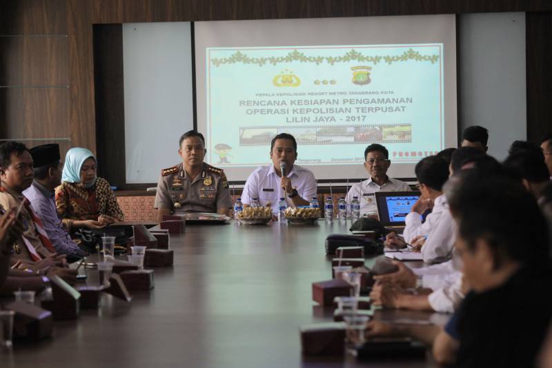 Tiga pilar Kota Tangerang menggelar Rapat Koordinasi Lintas Sektoral dalam rangka Pengamanan Hari Raya Natal 2017 dan Tahun Baru 2018 serta Stabilitas Harga Pangan di Wilayah Kota Tangerang.