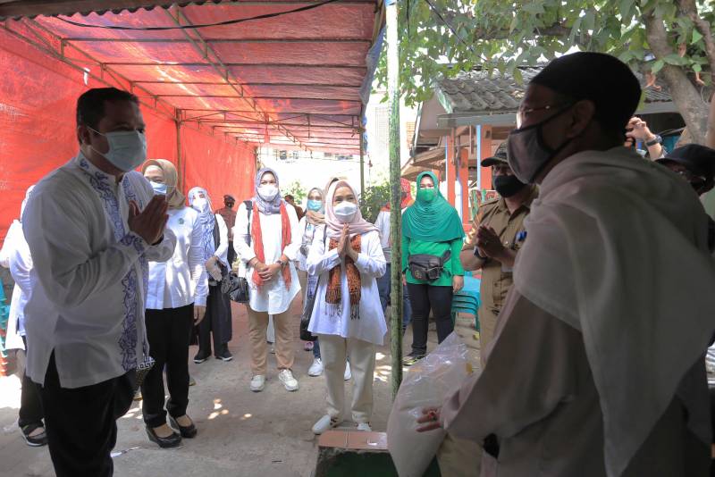 Wali Kota Tangerang, H. Arief R. Wismansyah, bersama Ketua TP PKK Kota Tangerang, Aini Suci, hadir dalam kegiatan pemberian 300 paket Bantuan Sosial (Bansos), yang diselenggarakan oleh Komunitas Jum'at Berbagi TNI/Polri bersama Ny. Leli Gunung Iskandar di wilayah Kelurahan Uwung Jaya, Kecamatan Cibodas, Kota Tangerang, Jumat (2/10/2020).
