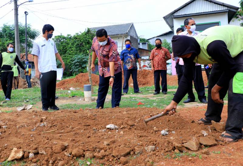 Wali Kota Tangerang, H. Arief R. Wismansyah, sambangi lahan tidur yang berada di Kampung Baru, Kelurahan Koang Jaya, Kecamatan Karawaci, Kota Tangerang, yang sedang dirubah menjadi lahan tanaman produktif dan tanaman hias, Kamis (8/10/2020).