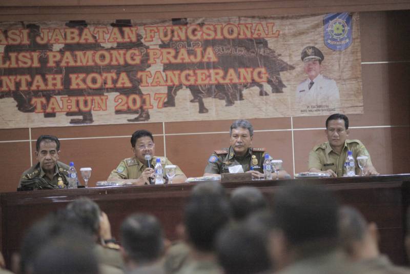 Hal tersebut disampaikan oleh Wakil Wali Kota Tangerang, H. Sachrudin, saat memberikan arahan pada pembukaan kegiatan Sosialisasi Jabatan Fungsional Polisi Pamong Praja Pemerintah Kota Tangerang di Aula Gedung Cisadane Lt. 4, Kota Tangerang, Senin (27/11).