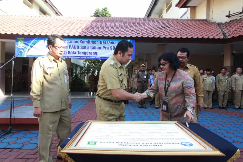 Mempersiapkan generasi muda untuk masa depan sebuah kota merupakan salah satu tugas dari pemerintah, oleh karena itu Pemerintah Kota Tangerang melakukan Penandatanganan Komitmen Bersama (MoU) Penuntasan PAUD 1 Tahun Pra SD yang dilakukan oleh seluruh Camat, Direktur Pembinaan Anak Usia Dini dengan Wali Kota Tangerang.
