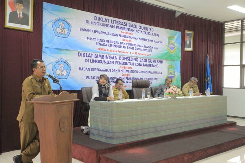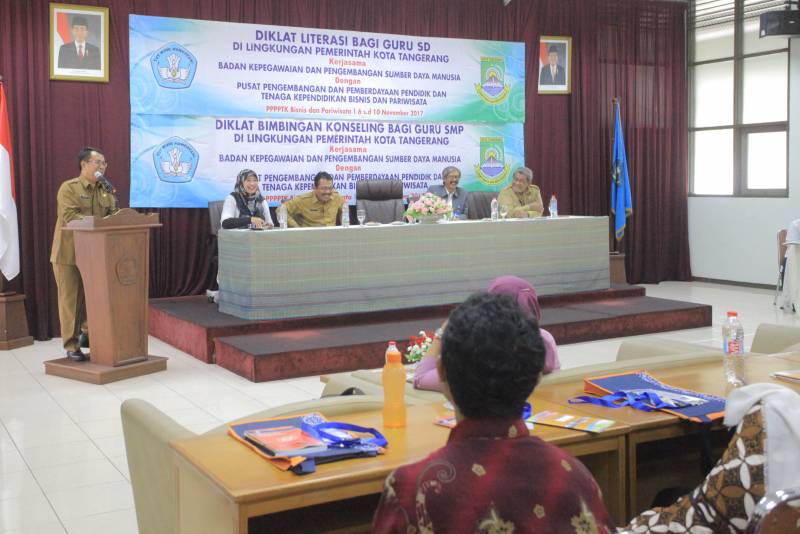 Sekretaris Daerah Kota Tangerang, H. Dadi Budaeri, secara resmi membuka kegiatan Diklat Literasi Satu Guru Satu Buku Bagi Guru SD dan Diklat Bimbingan Konseling Bagi Guru SMP di Lingkungan Pemerintah Kota Tangerang yang bertempat di PPPPTK Bisnis dan Pariwisata, Sawangan, Depok, Senin (6/11).
