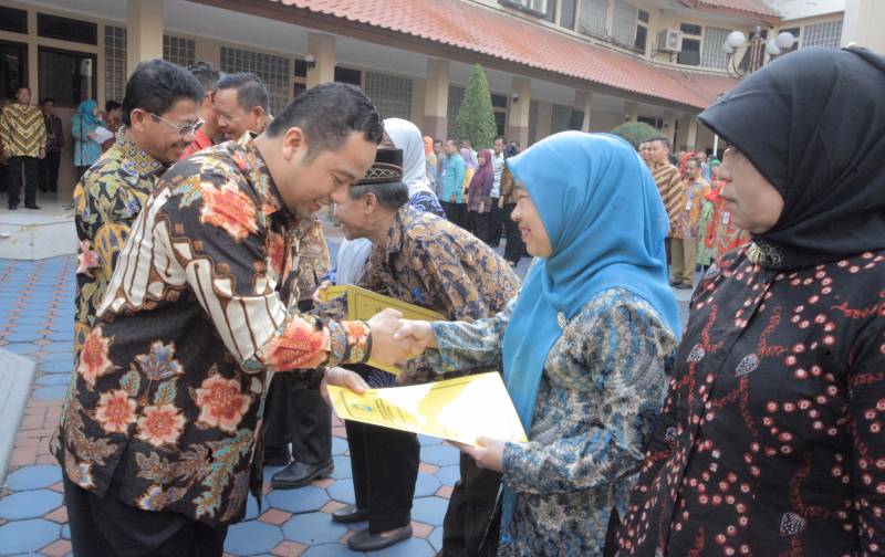 Selanjutnya, Wali Kota juga menyerahkan SK Pensiun secara simbolis kepada 3 (tiga) pegawai yang sudah memasuki masa purna bakti, sekaligus juga memberikan SK Kenaikan Pangkat Tepat Waktu kepada 156 pegawai yang diwakili oleh tiga PNS.