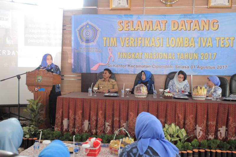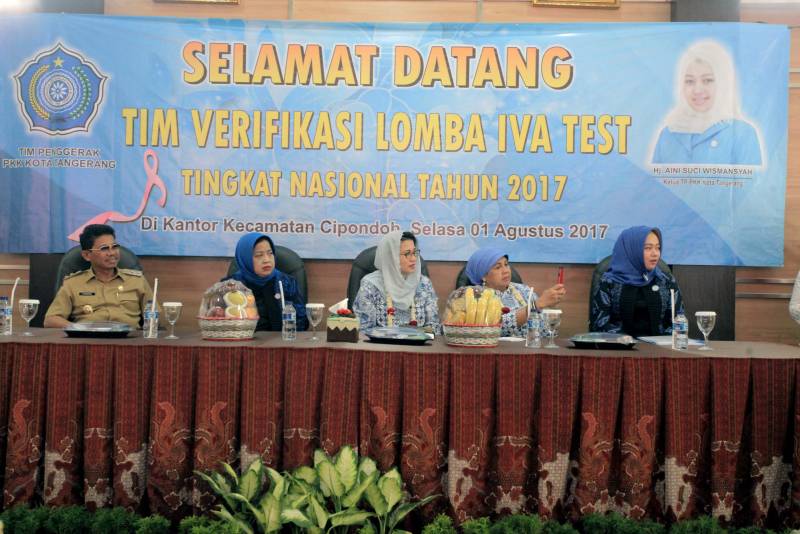 Tim Penilai Lomba IVA Test yang diketuai oleh Retno Damayanti Gobel, dari Kelompok Kerja (Pokja) IV TP PKK Pusat, beserta rombongan, melakukan kegiatan Penilaian IVA Test yang dipusatkan di Puskesmas Cipondoh, Selasa (01/8), yang sebelumnya diawali dengan penyampaian ekspos oleh Ketua TP PKK Kota Tangerang, Hj. Aini Suci Wismansyah serta sambutan dari Wakil Wali Kota Tangerang, Sachrudin, di Kantor Kecamatan Cipondoh.
