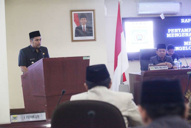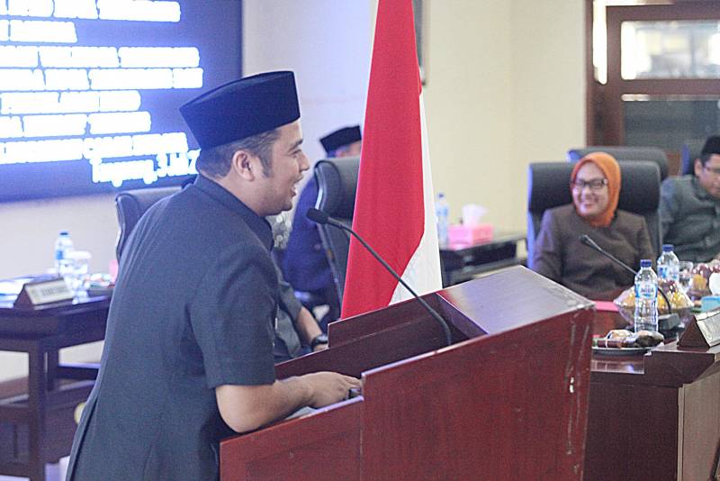 Wali Kota Tangerang, Arief Rachadiono Wismansyah, menyampaikan penjelasan atas Rancangan Peraturan Daerah (Raperda) saat Rapat Paripurna DPRD Kota Tangerang dalam rangka Penyampaian Penjelasan Wali Kota mengenai Tiga Raperda Kota Tangerang dan Penyampaian Penjelasan DPRD mengenai Raperda Inisiatif tentang Pengelolaan dan Pelestarian Cagar Budaya, Senin (03/07), di Ruang Rapat DPRD Kota Tangerang.