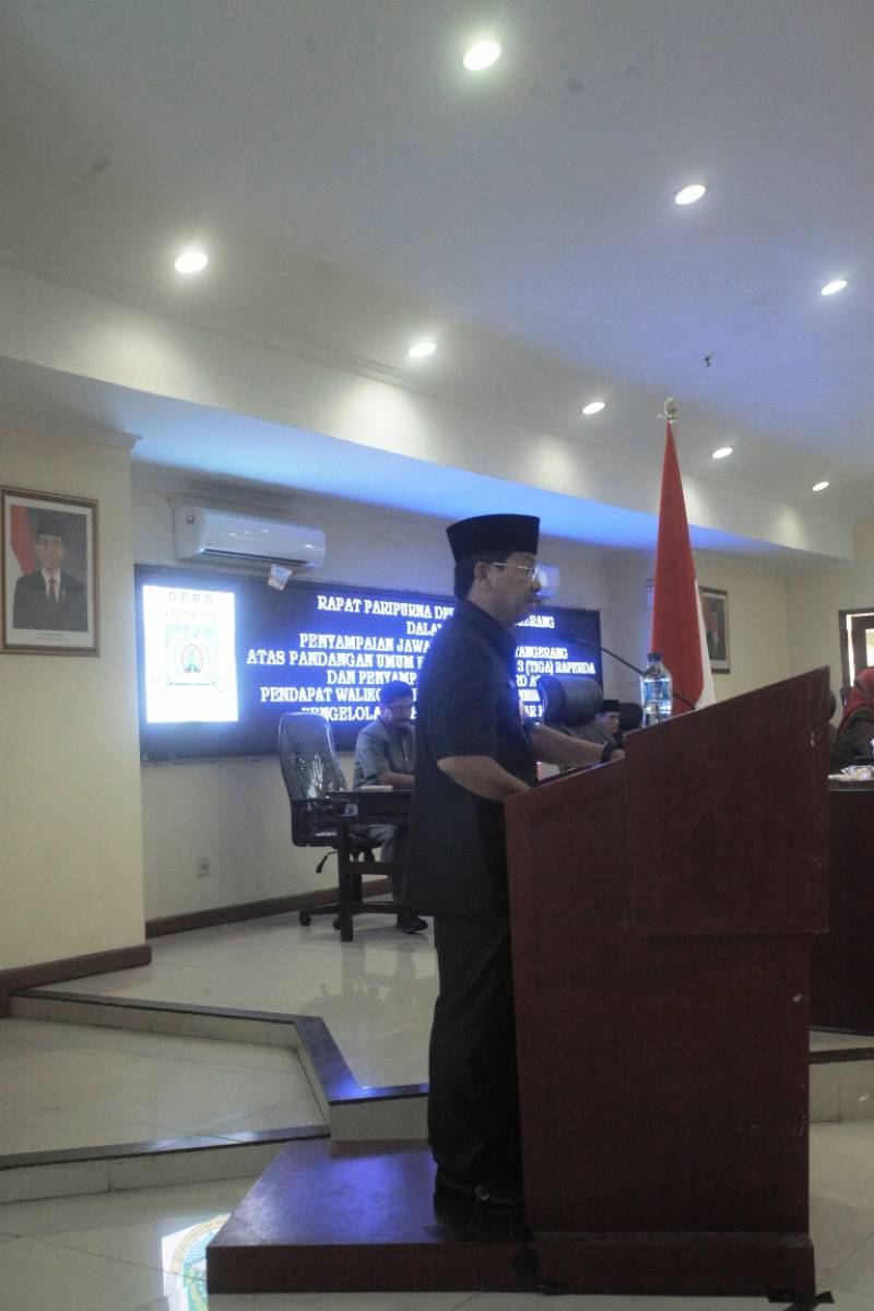 Sementara itu, jawaban Wali Kota terhadap beberapa pertanyaan yang disampaikan oleh perwakilan fraksi-fraksi di DPRD Kota Tangerang, disampaikan oleh Wakil Wali Kota Tangerang, H. Sachrudin.