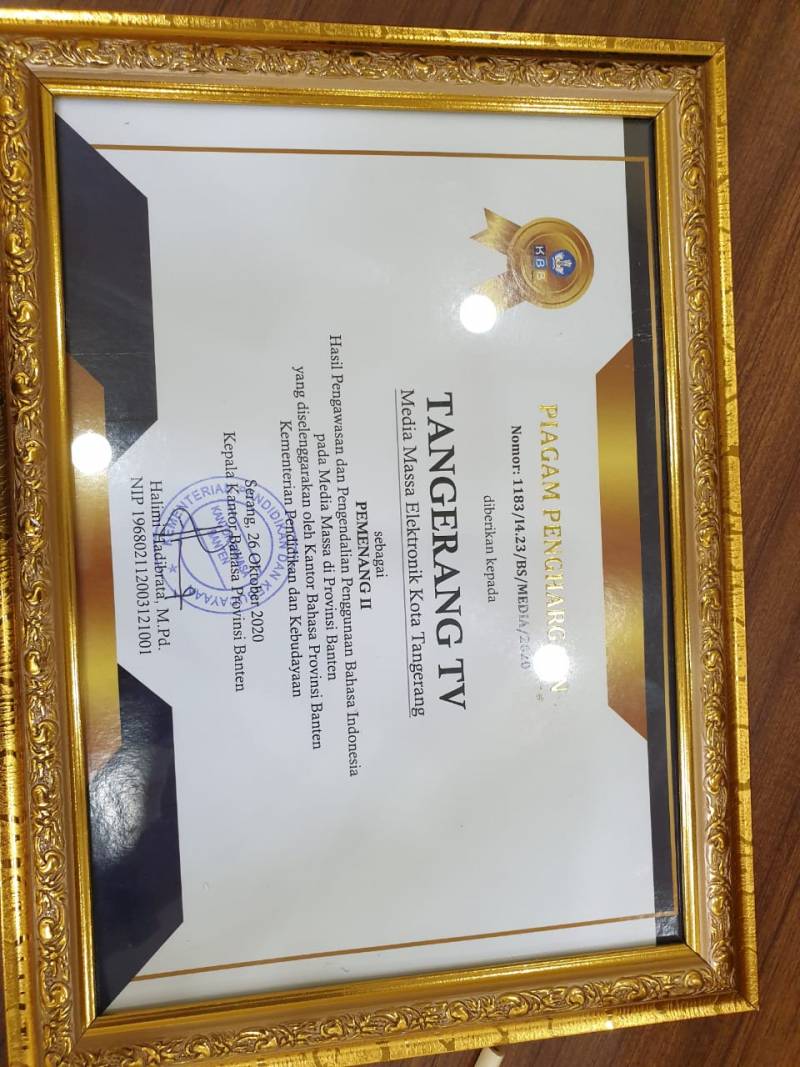 Berbagai upaya yang dilakukan oleh Dinas Kominfo Kota Tangerang melalui Tangerang TV berbuah apresiasi dari Kantor Bahasa Banten, Kementerian Pendidikan dan Kebudayaan, sebagai juara kedua, untuk kategori media elektronik di Banten.