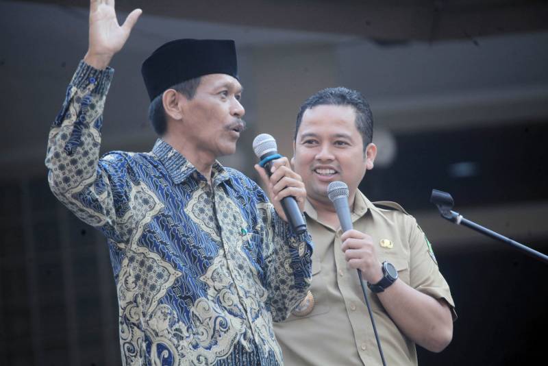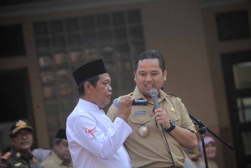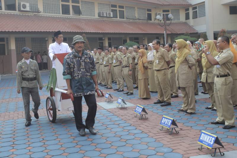"Coba Pak RW praktekin, inspeksi tuh para peserta apel," ujar Wali Kota kepada Sunarno yang juga langsung mempraktekkan gayanya dalam menginspeksi pasukan lengkap dengan gerobak dan ajudannya.