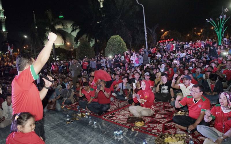 Meski pada akhirnya Timnas kalah 0-1 dari Malaysia, namun para penonton terlihat masih semangat meneriakkan yel-yel dukungannya untuk Timnas, tak terkecuali Wali Kota. Meski ada raut kecewa diwajah mereka, para supporter yang hadir tampak dengan tertib membubarkan diri meninggalkan halaman Puspem.