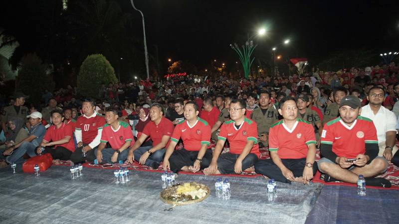 Acara Nonton Bareng (Nobar) pertandingan Semifinal antara Timnas U-22 lawan Timnas U-22 Malaysia, yang digelar oleh Pemkot Tangerang dibanjiri oleh ribuan supporter yang ingin mendukung Indonesia Juara.