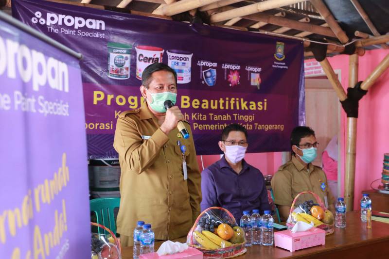 Sekretaris Daerah (Sekda) Kota Tangerang, Herman Suwarman, didampingi Kepala Bappeda Kota Tangerang, Sugiharto Achmad Bagdja, hadir dalam kegiatan Serah Terima Bantuan Cat yang berjumlah 25.000 liter dari PT. Propan Raya untuk Kampung Rumah Kita Tanah Tinggi yang berlokasi di RW 09, Kelurahan Tanah Tinggi, Kecamatan Tangerang, Selasa (03/11).