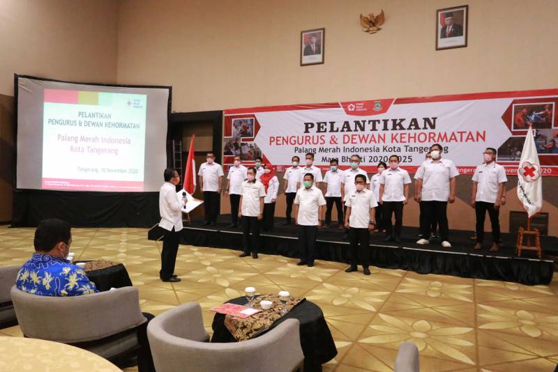 Wali Kota Tangerang, Arief Wismansyah, hadir sekaligus melantik Pengurus dan Dewan Kehormatan PMI Kota Tangerang Masa Bhakti 2020-2025, yang bertempat di Hotel Allium, Kota Tangerang, Selasa (10/11/2020).