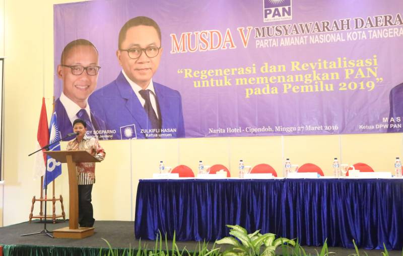 Wakil Wali Kota Tangerang, Sachrudin, Minggu (27/03), membuka Musyawarah Daerah (Musda) V Partai Amanat Nasional (PAN) di Hotel Narita Cipondoh, Kota Tangerang.