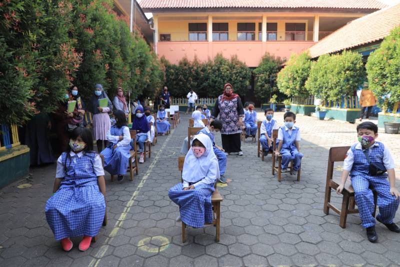 Puskesmas Sukasari, Kecamatan Tangerang menggelar Bulan Imunisasi Anak Sekolah (BIAS), di SDN Tangerang I Kamis (19/11/20).