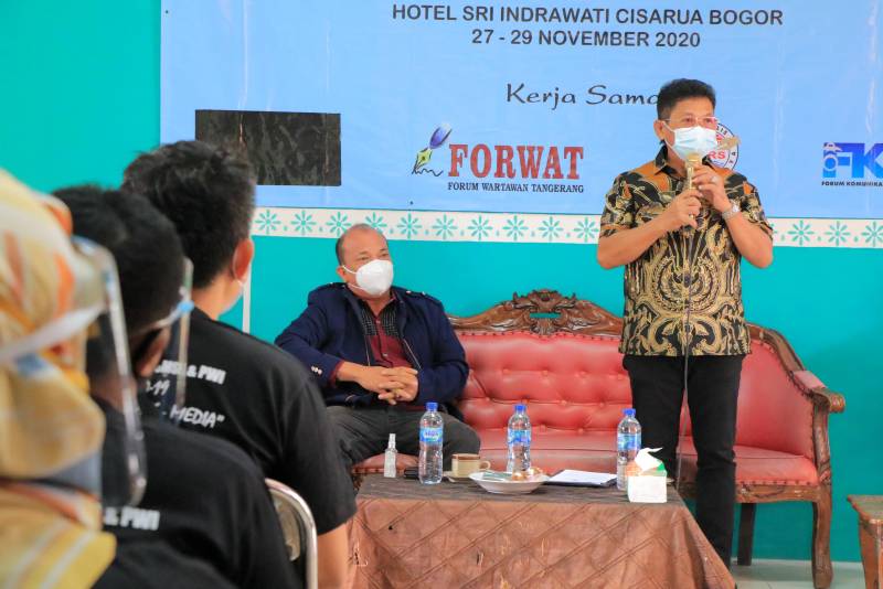 Wakil Wali Kota Tangerang H. Sachrudin menjadi salah satu narasumber dalam acara Diskusi Panel Wartawan se-Kota Tangerang yang berlangsung di Hotel Sri Indrawati, Cisarua, Bogor, Sabtu (28/11).