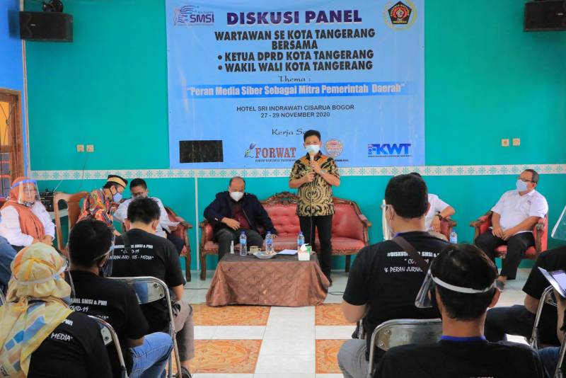 Acara yang diinisiasi oleh Serikat Media Siber Indonesia (SMSI) Kota Tangerang tersebut mengusung tema "Peran Media Siber Sebagai Mitra Pemerintah Daerah".