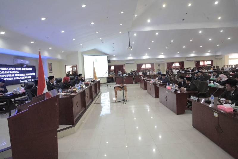 Hal itu disampaikannya pada Rapat Paripurna Dewan Perwakilan Rakyat Daerah (DPRD) Kota Tangerang, dalam rangka Pengambilan Keputusan Mengenai Penetapan Empat Rancangan Peraturan Daerah (Raperda) Kota Tangerang. Empat Rancangan Peraturan Daerah (Raperda) yang telah selesai pembahasannya dan ditetapkan sebagai Peraturan Daerah (Perda), Jum'at (21/07), di Ruang Rapat Dewan Perwakilan Rakyat Daerah (DPRD) Kota Tangerang.