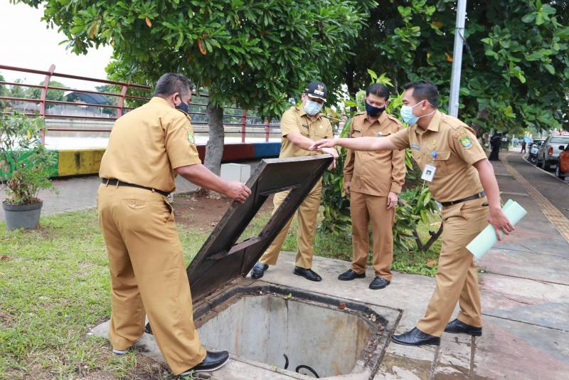 Wali Kota Tangerang H. Arief R Wismansyah yang didampingi Kepala Dinas Lingkungan Hidup (DLH) Kota Tangerang Dedi Suhada melihat langsung percontohan Tempat Pembuangan sampah yang terpendam yang berlokasi di Jalan Benteng Jaya Kelurahan Sukarasa Kecamatan Tangerang, Senin (7/12).