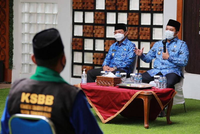 Wali Kota Tangerang H. Arief R Wismansyah didampingi Wakilnya H. Sachrudin berkesempatan hadir pada acara pemberian bantuan prasarana latihan kepada 6 Perguruan Silat yang berada di Kota Tangerang, yang diselenggarakan di Pendopo Wali Kota Tangerang, Kamis (17/12/2020).