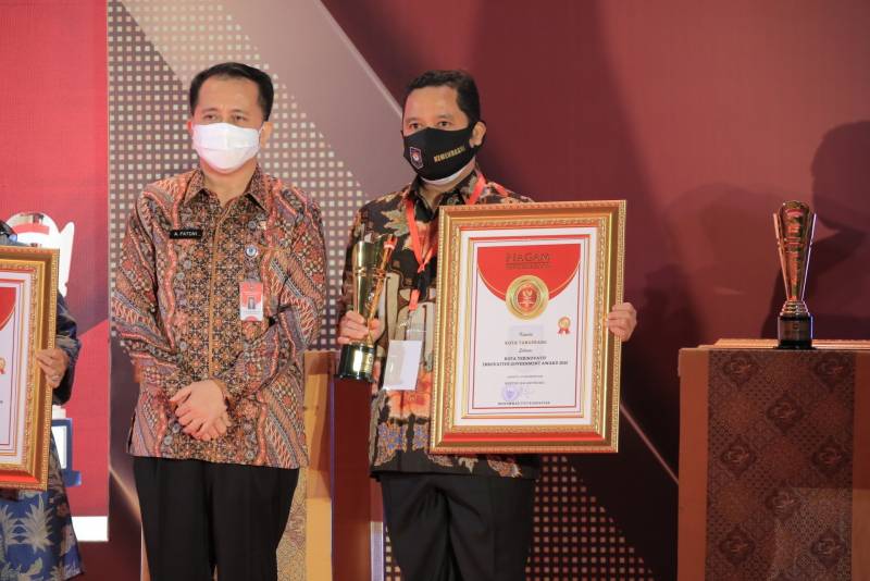 Wali Kota Tangerang H. Arief R. Wismansyah menerima langsung penghargaan yang diserahkan oleh Kepala Badan Penelitian dan Pengembangan (BPP) Kemendagri Agus Fatoni.
