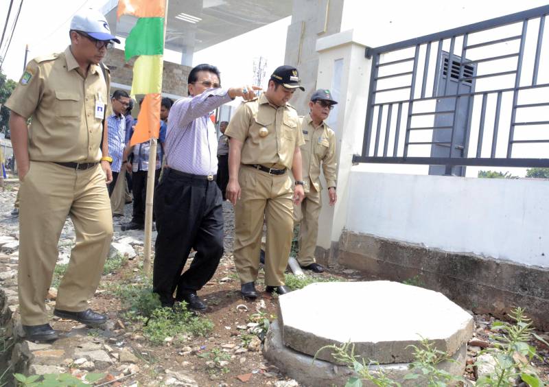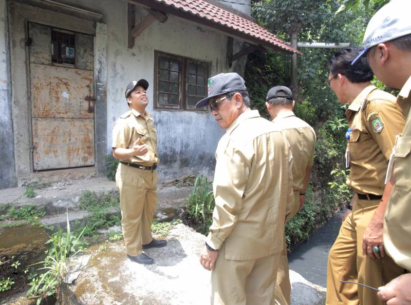Sambil menyusuri saluran pembuangan perumahan, Wali Kota mengecek langsung kondisi saluran air di komplek tersebut yang memang sudah mengalami pendangkalan.