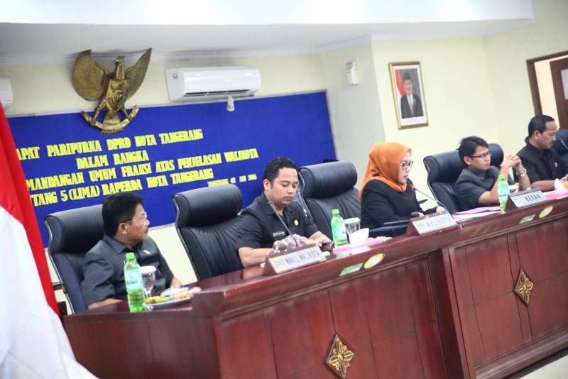 Sembilan fraksi yang ada di Dewan Perwakilan Rakyat Daerah (DPRD) Kota Tangerang secara umum mengapresiasi atas upaya Pemkot Tangerang dalam pelaksanaan pembangunan dalam APBD Tahun 2015 dan atas ajuan Lima Rancangan Peraturan Daerah (Raperda), perwakilan fraksi-fraksi memberikan masukan-masukan terkait fungsi, manfaat serta kesiapan perangkat-perangkat pelaksanaannya kedepan.