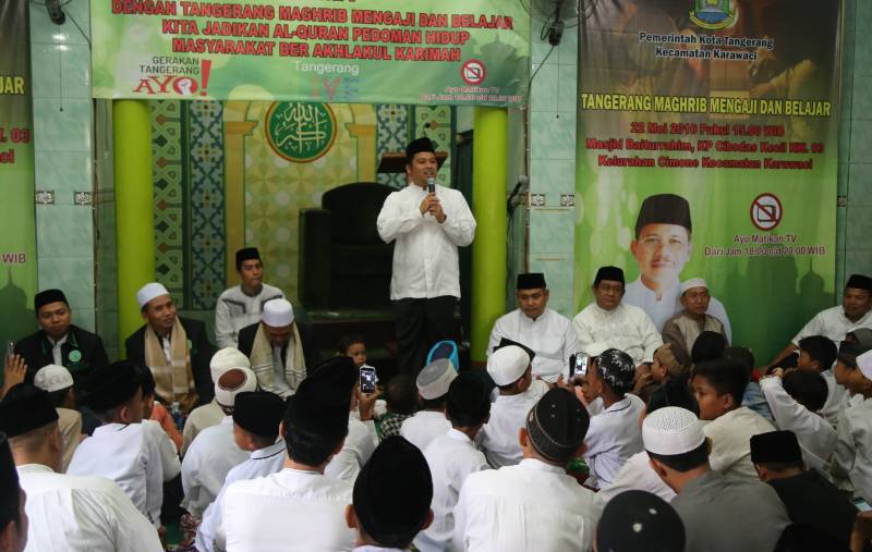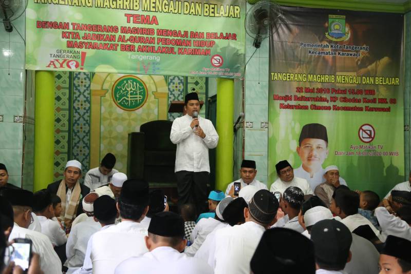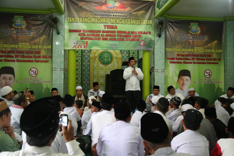 "Kami juga ingin menanamkan nilai-nilai Al Quran dan Sunnah, karena kebersihan itukan sebagian dari iman, masa masjid yang menjadi simbol kekuatan iman kita, dibiarkan tidak terawat dan kurang bersih," papar Wali Kota Tangerang, Arief R. Wismansyah, saat memberikan sambutan dalam acara Sosialisasi Magrib Mengaji di Masjid Baiturrahim Karawaci, Minggu (22/05).