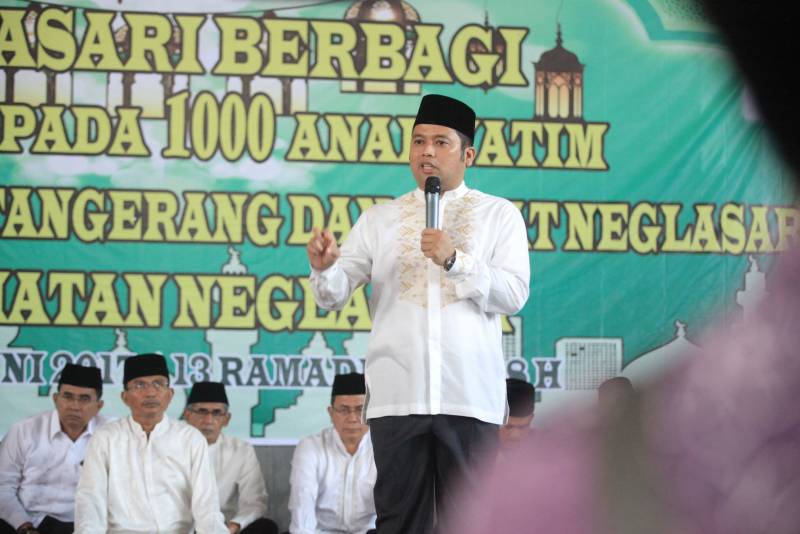 " Di kota Tangerang tidak boleh ada anak yang putus sekolah,karena pendidikan anak - anak kota Tangerang sudah dijamin oleh Pemkot." Himbau Wali Kota pada acara Neglasari berbagi santunan 1000 anak yatim di GOR Neglasari, kecamatan Neglasari, Kamis (8/6).